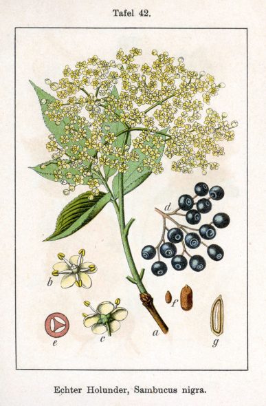 Il sambuco (Sambucus nigra) ha molte associazioni magiche con streghe, stregoni, spiriti e fate.