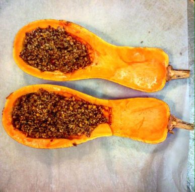 Procedimento: taglia la zucca in due metà. Sistemale sulla leccarda ricoperta da carta forno e fa cuocere per 20 minuti/mezz’ora a seconda della grandezza, in forno già caldo a 180°.